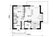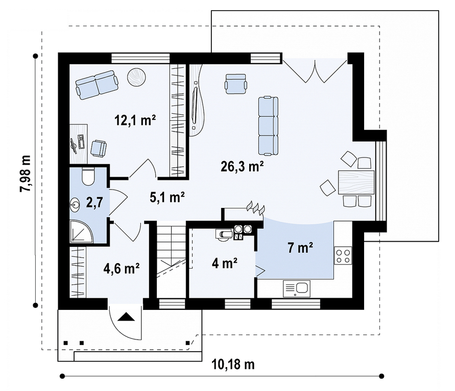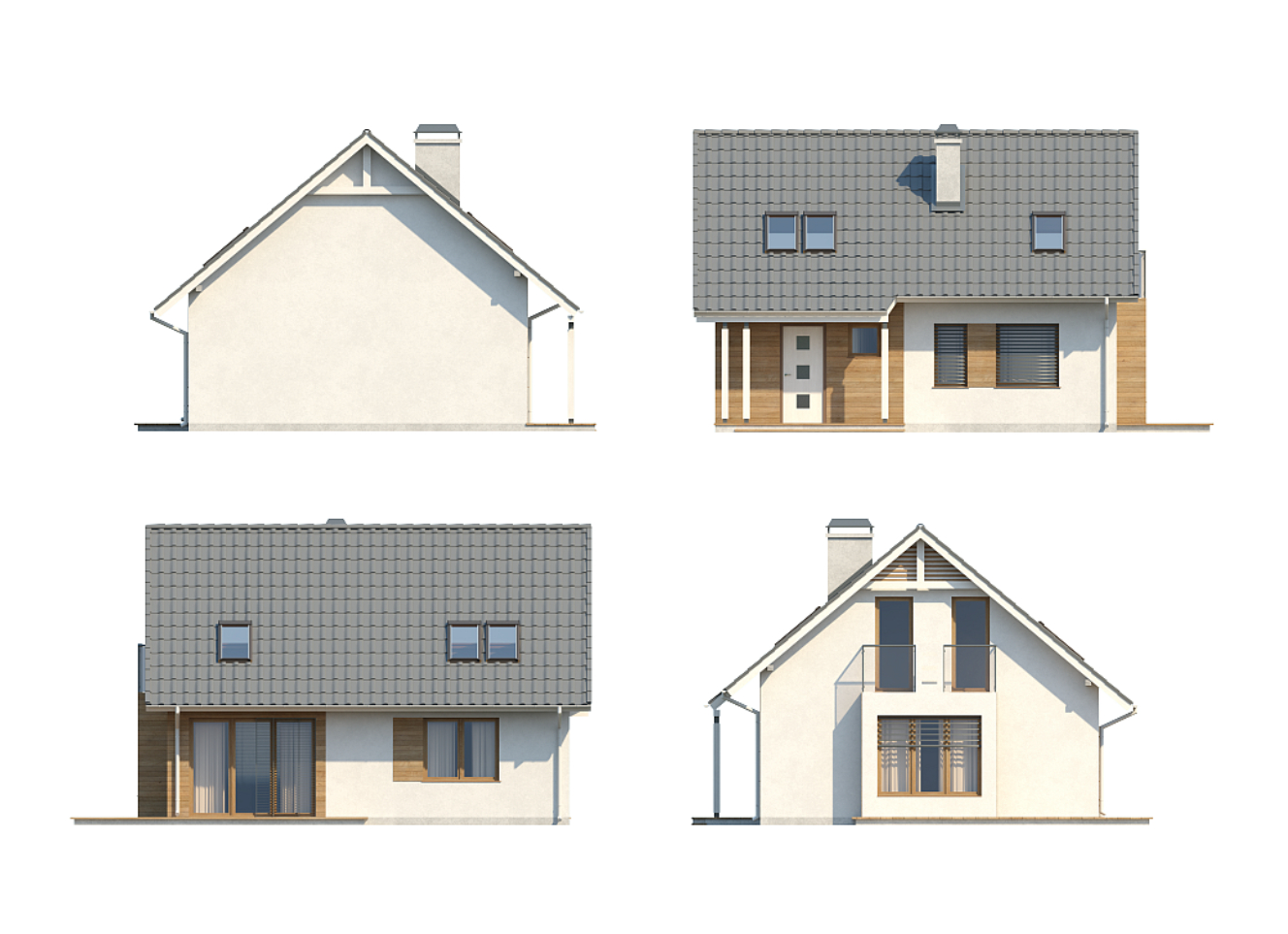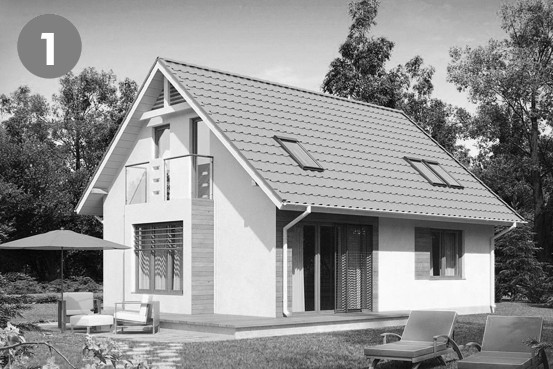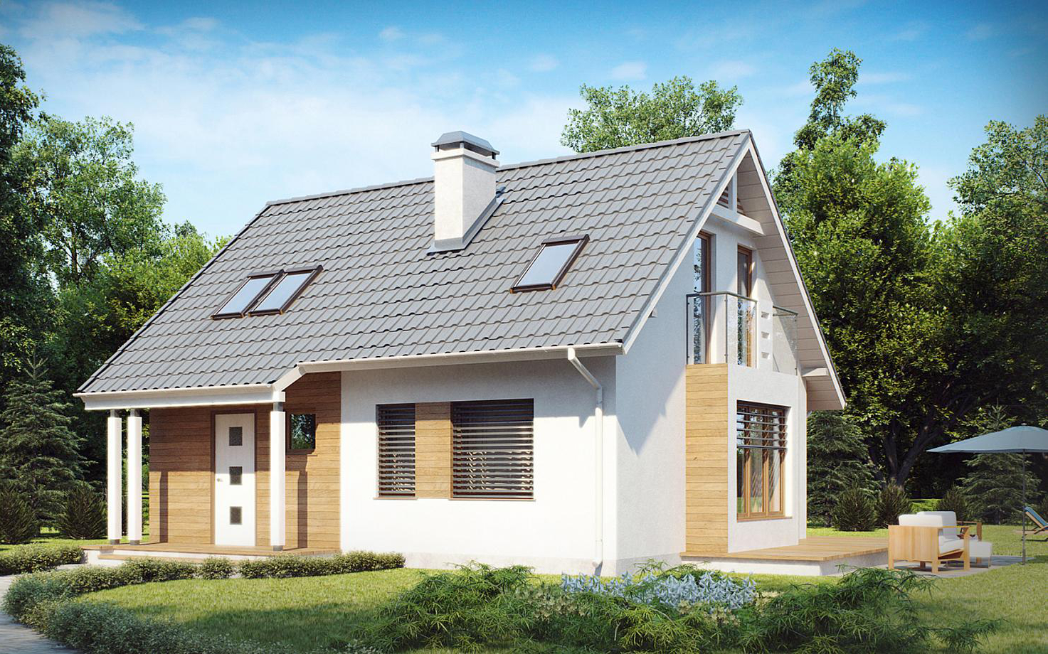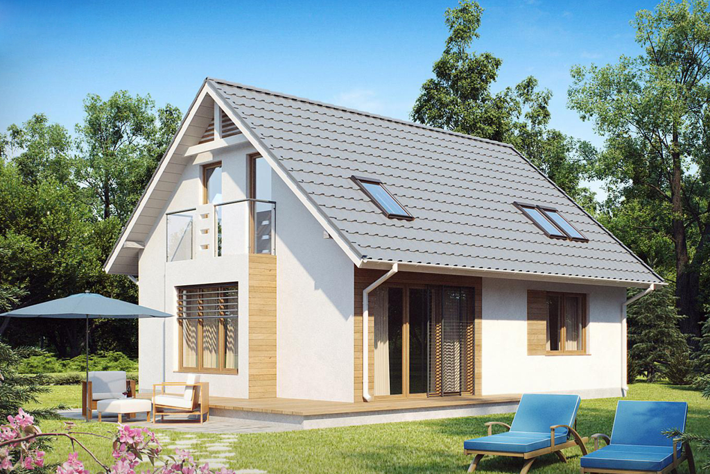 Funkcjonalny i tani w budowie dom z garażem jednostanowiskowym. Projekty domów w żurawkach charakteryzują się efektywnie wykorzystaną przestrzenią i minimalizacją komunikacji na korzyść funkcjonalności pomieszczeń.