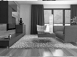 z jadalnią i bezpośrednim wyjściem do ogrodu dzięki dużym przeszkleniom została szeroko otwarta