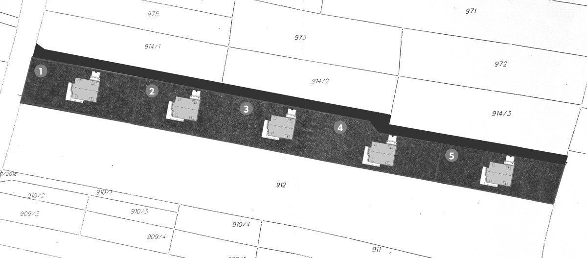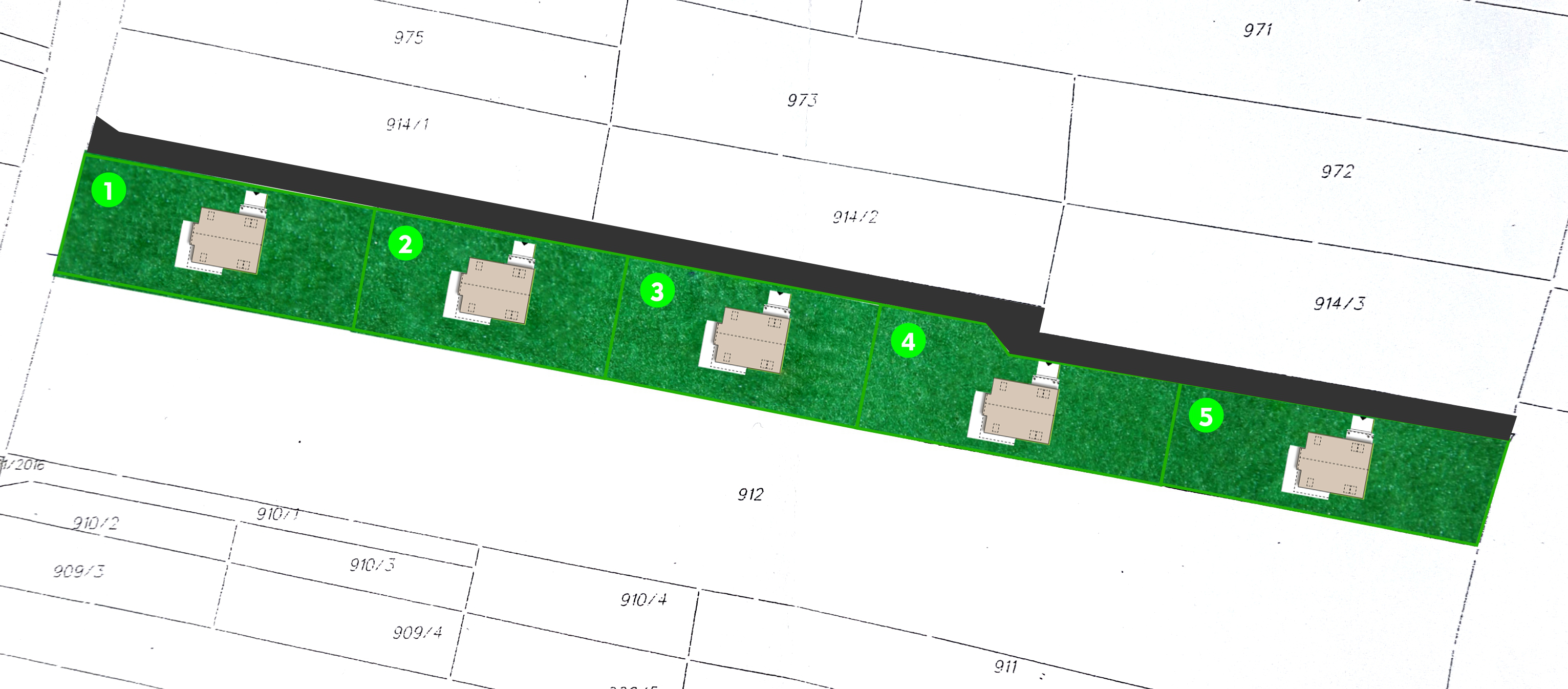 Wielkości działek w zależności od wybranego projektu: 11-13 arów.